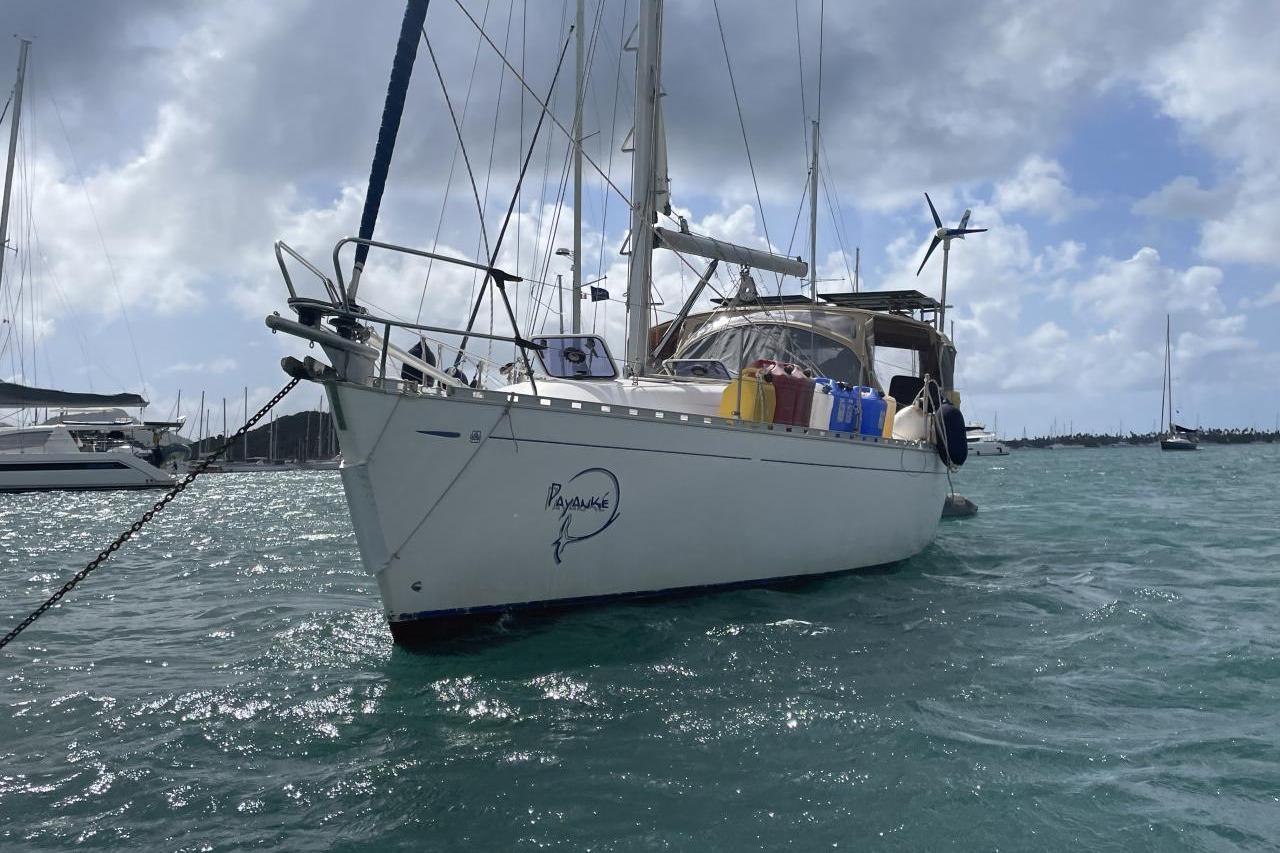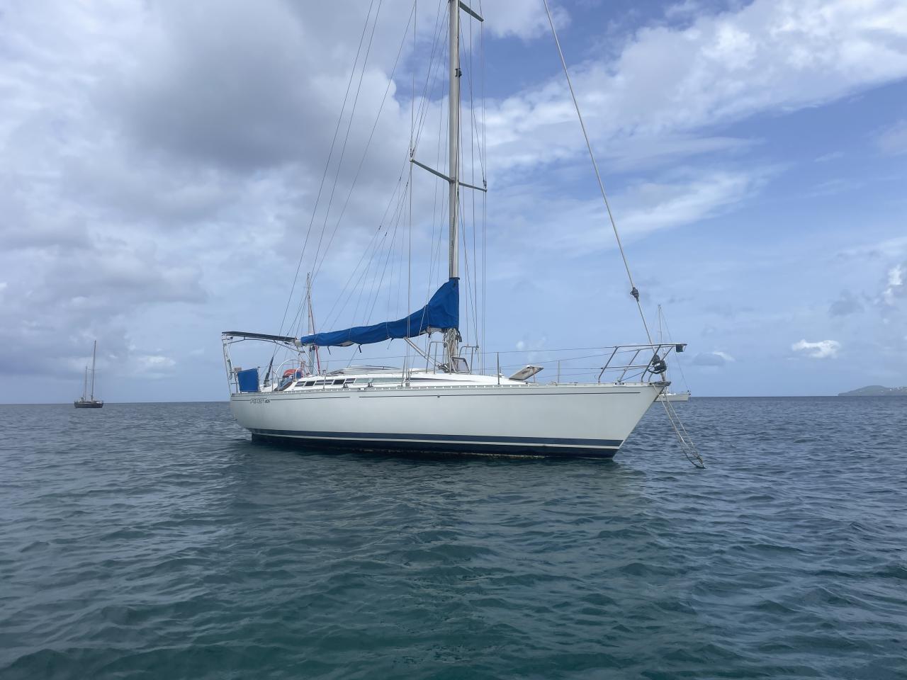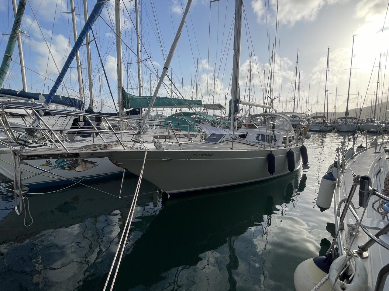 Inside, the spacious saloon features a comfortable living room, a fully equipped kitchen, and a chart table with panoramic views. The cabins offer optimal comfort with double beds, storage and en-suite bathrooms. Air conditioning is present in the saloon and cabins, ensuring thermal comfort in all seasons.