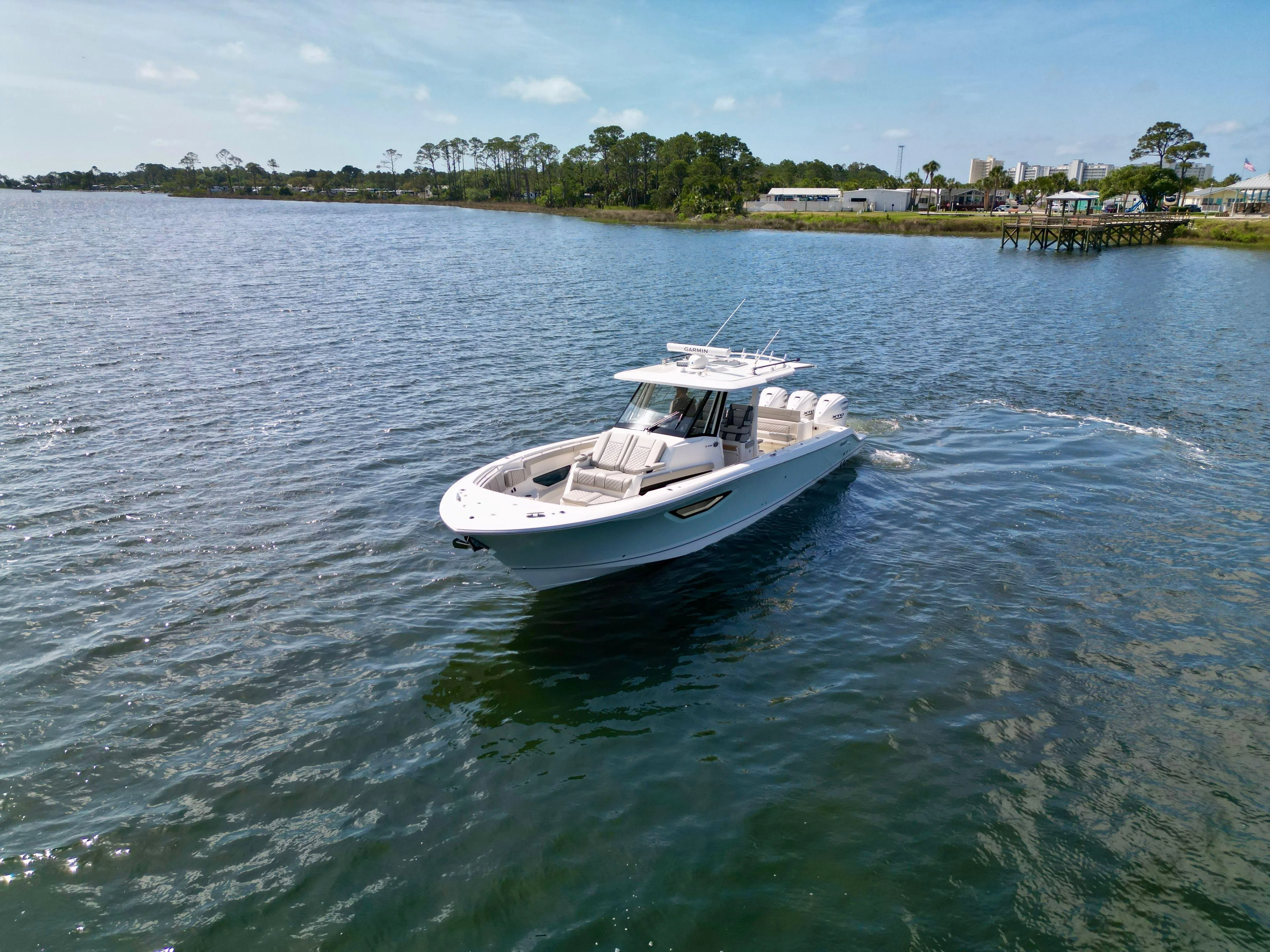 The Tiara Yachts 43 LE is as practical as it is luxurious. The Mercury Integrated Bow Thruster System makes docking and maneuvering in tight spaces effortless, reducing stress and increasing confidence for captains of all experience levels. The electric fold-down antennas and navigation light simplify storage and transport, allowing you to easily fit under bridges or into covered slips.Storage solutions are thoughtfully integrated throughout the yacht, providing ample space for gear, water toys, and personal belongings. The solid surface finishes are not only visually stunning but also durable and easy to maintain, ensuring your yacht remains in pristine condition with minimal effort. The advanced Garmin radar and navigation displays keep you informed and safe, whether you are exploring new destinations or returning to your favorite marina.