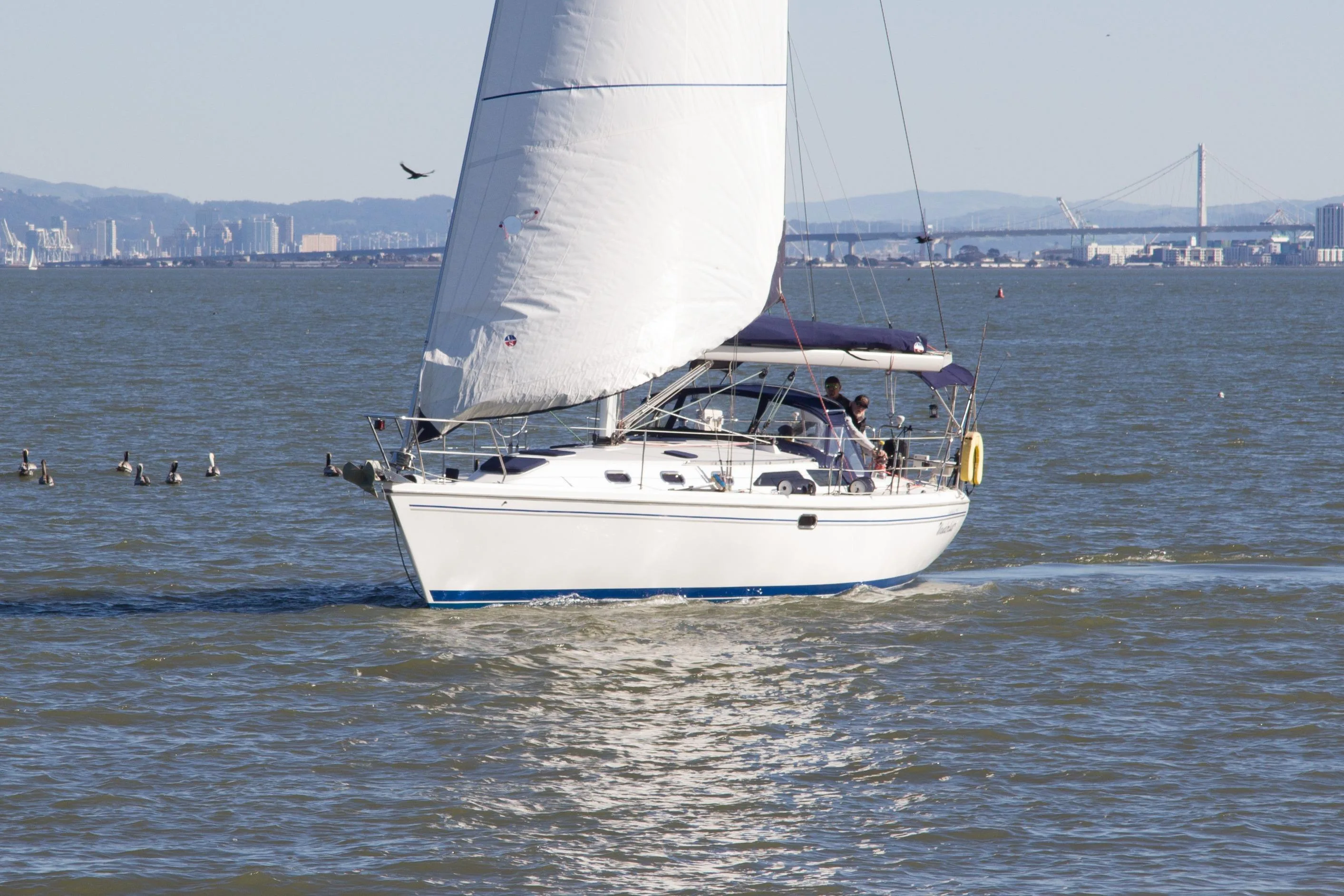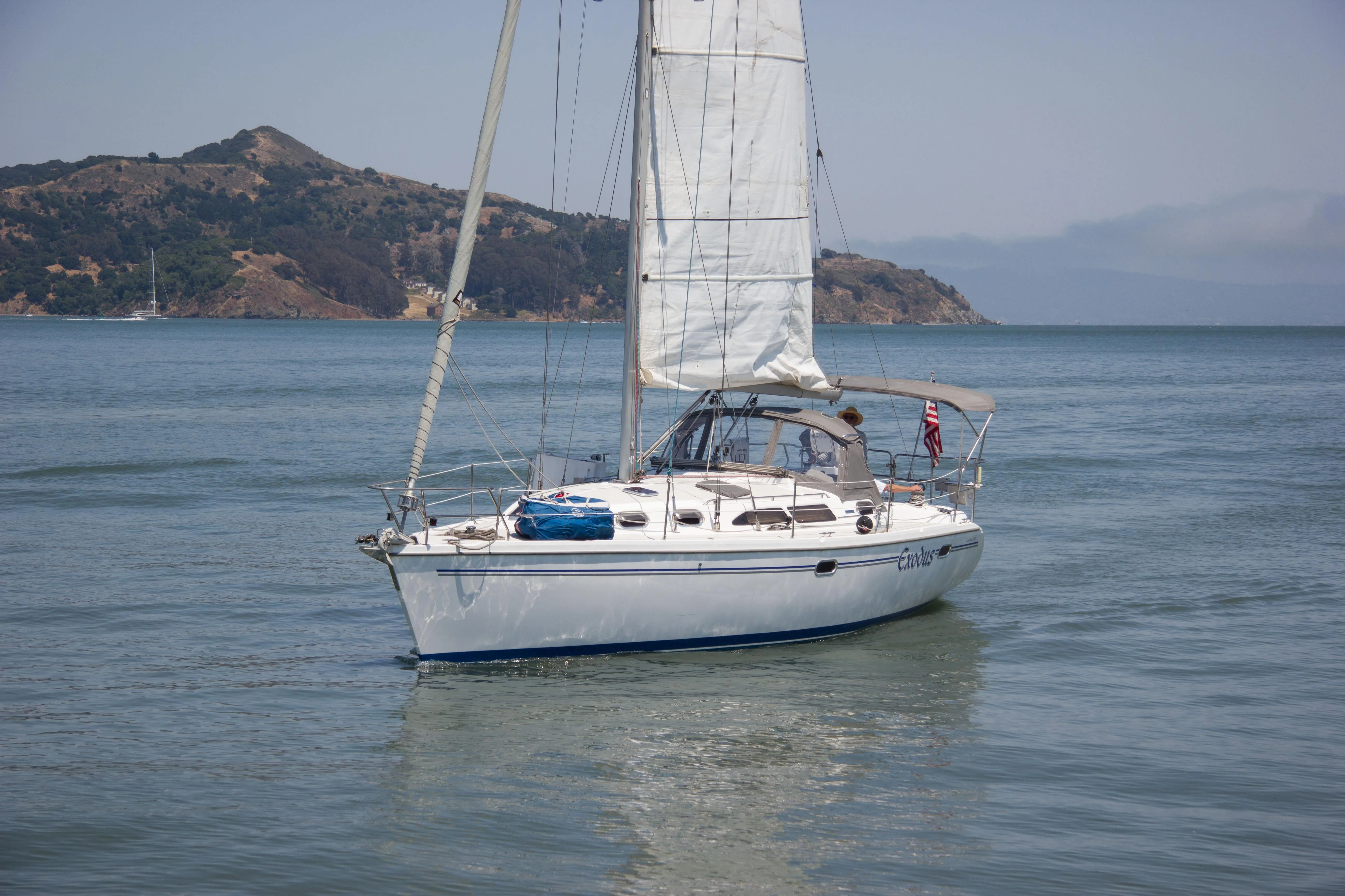 This particular professionally maintained example is fully equipped and ready to go around the world--and with 800 gallons of fuel you'll get pretty far (figure about 2,500 miles) before you ever need to raise the sails! But with such a roomy, comfortable three stateroom interior beautifully fitted out in teak, and all the oversized windows and hatches, you might just decide to use her as a weekend retreat here in the Bay area...
