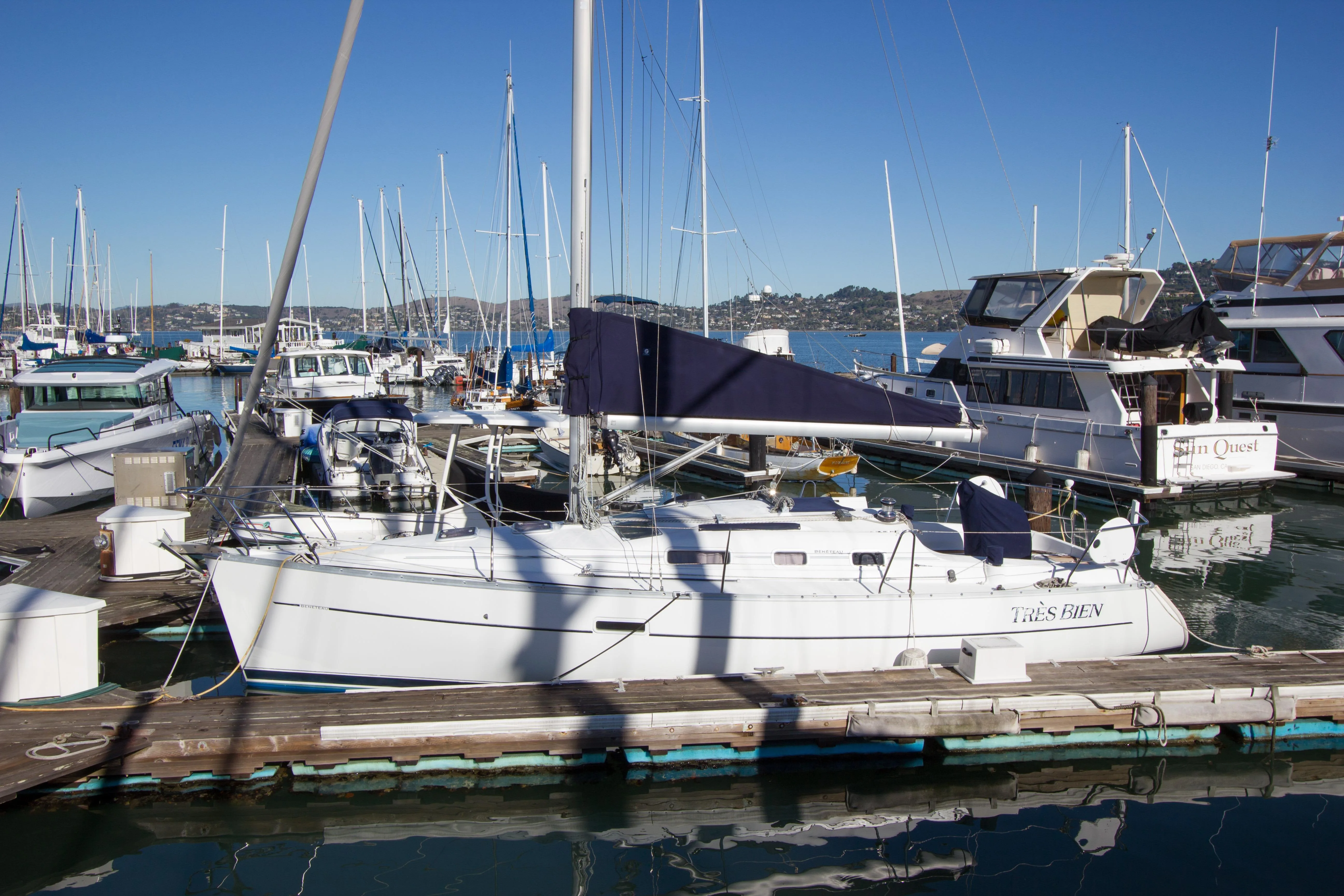 SO: Seascape is well fit out and in excellent cosmetic condition both above and below, but the real story might be location, location, location: she's lying in a potentially transferable downtown slip right on the turning basin in the Sausalito Yacht Harbor; there's a long waiting list to get a slip of ANY size here and it can take YEARS to get one of the bigger ones so this is a material benefit if you're able to take advantage...