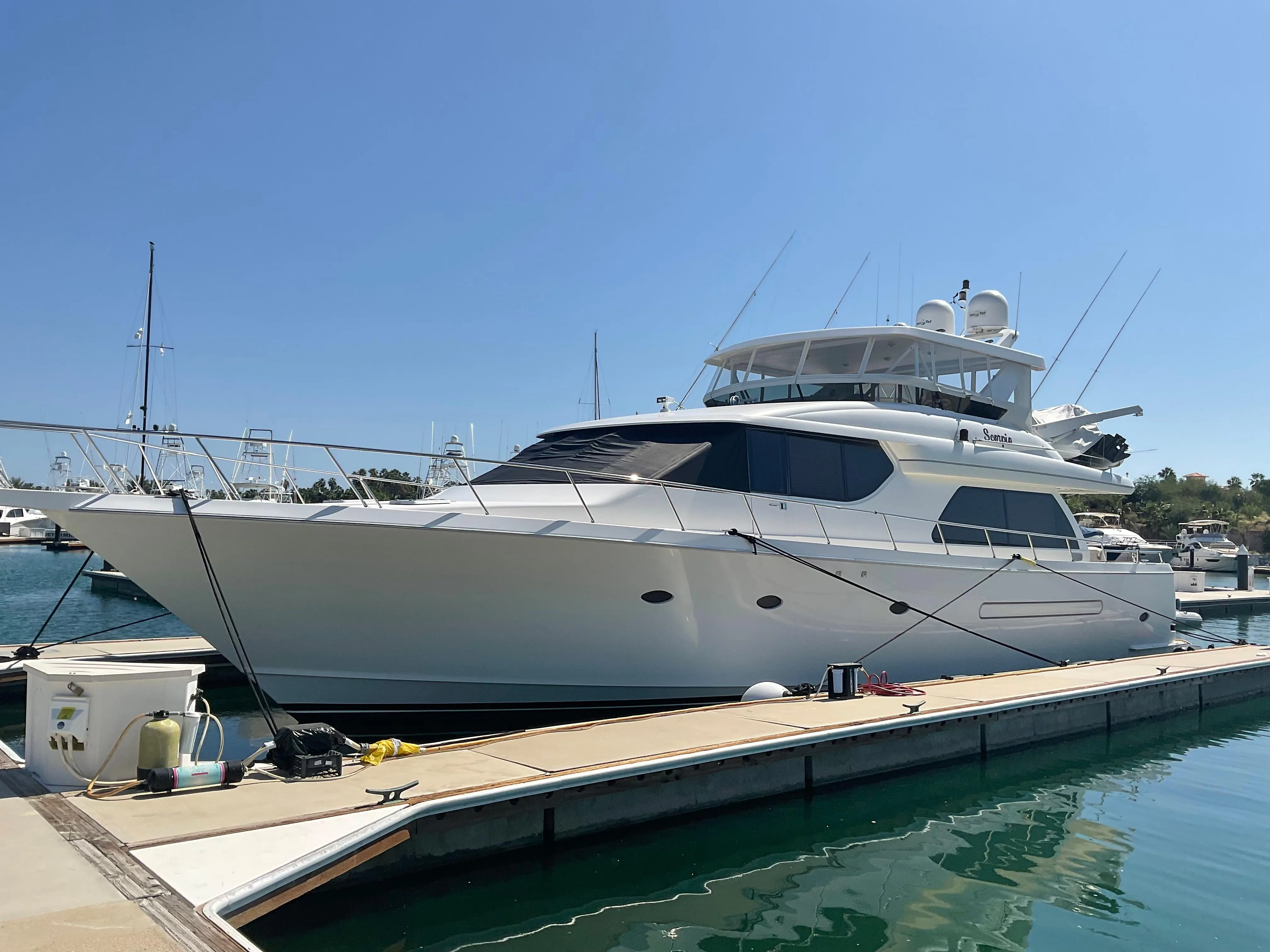THIS 54’ OCEAN ALEXANDER 54V 2007 IS POWERED WITH CATERPILLAR C-9 DIESEL ENGINES RATED AT 567HP EACH WITH 435 ORIGINAL HOURS. THIS OCEAN ALEXANDER HAS BEEN MOORED IN A BOATHOUSE IN FRESHWATER. THREE STATEROOMS/TWO HEADS. NORTHERN LIGHTS 12KW GENERATOR WITH 486 ORIGINAL HOURS. REVERSE CYCLE HEAT/AIR. BOW AND STERN THRUSTERS. CALL FOR FULL DETAILS AND SHOWING.