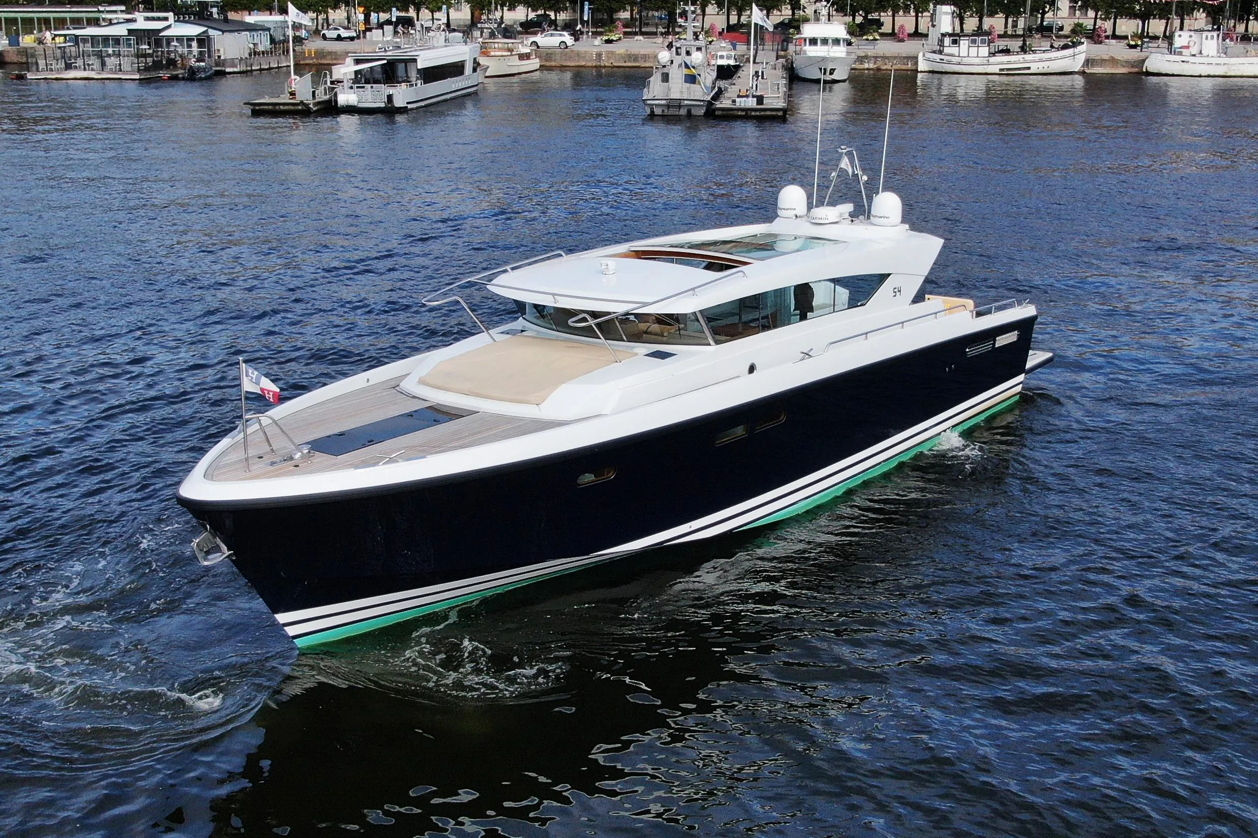 Powered by twin Yanmar diesel engines the VanDutch 40 delivers an impressive combination of speed, stability, and smooth handling. Whether cruising along the coast or heading to a weekend destination, this boat performs effortlessly while turning heads in every marina.