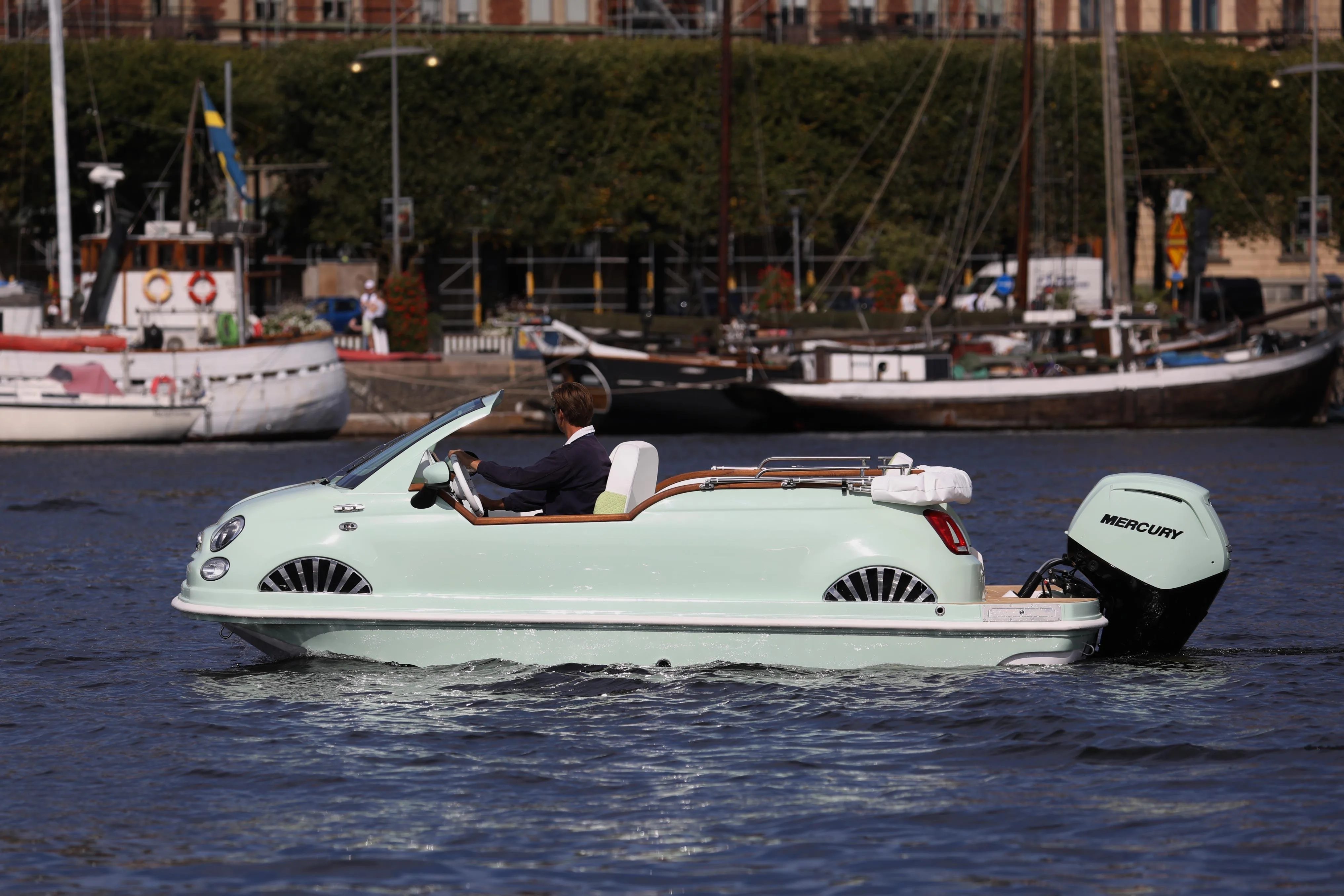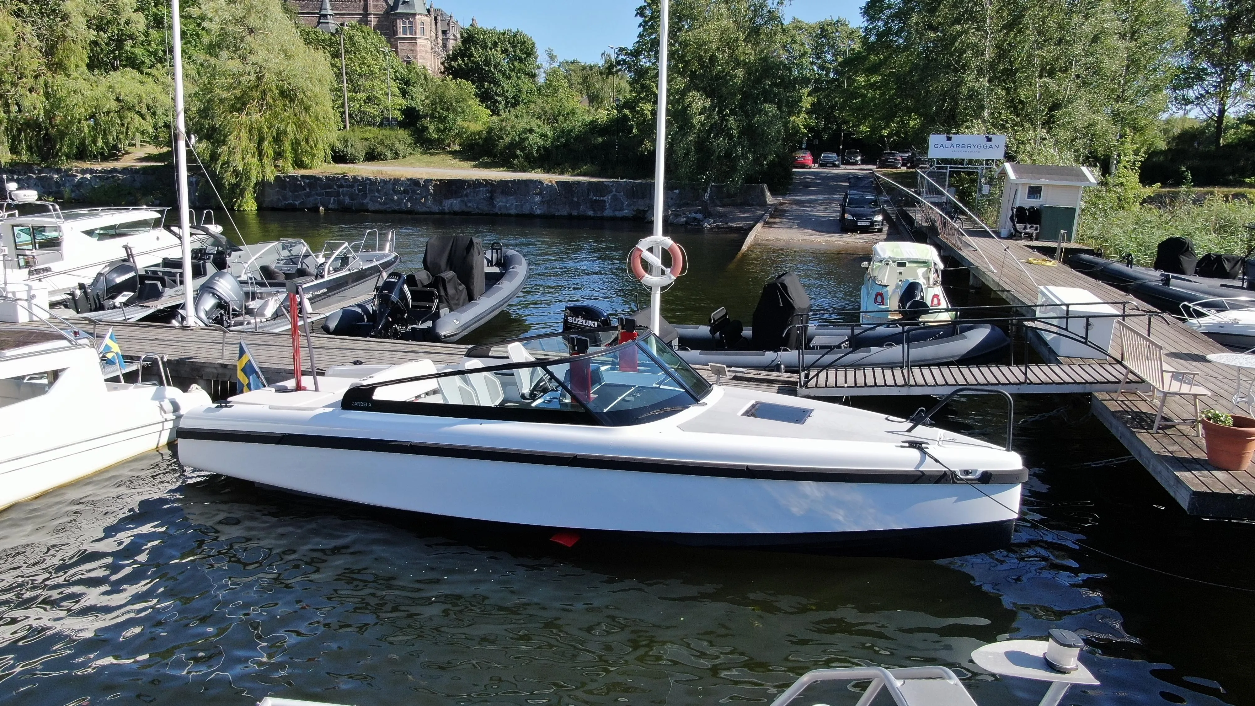 Below deck, you'll find a surprisingly roomy interior with a double V-berth, enclosed bathroom, and a compact galley, offering overnight capability without compromising on aesthetics. The high-quality finish continues throughout the cabin, maintaining the boat’s sophisticated look and feel.