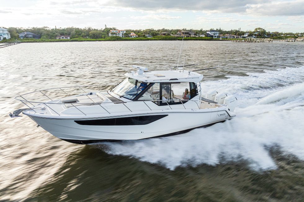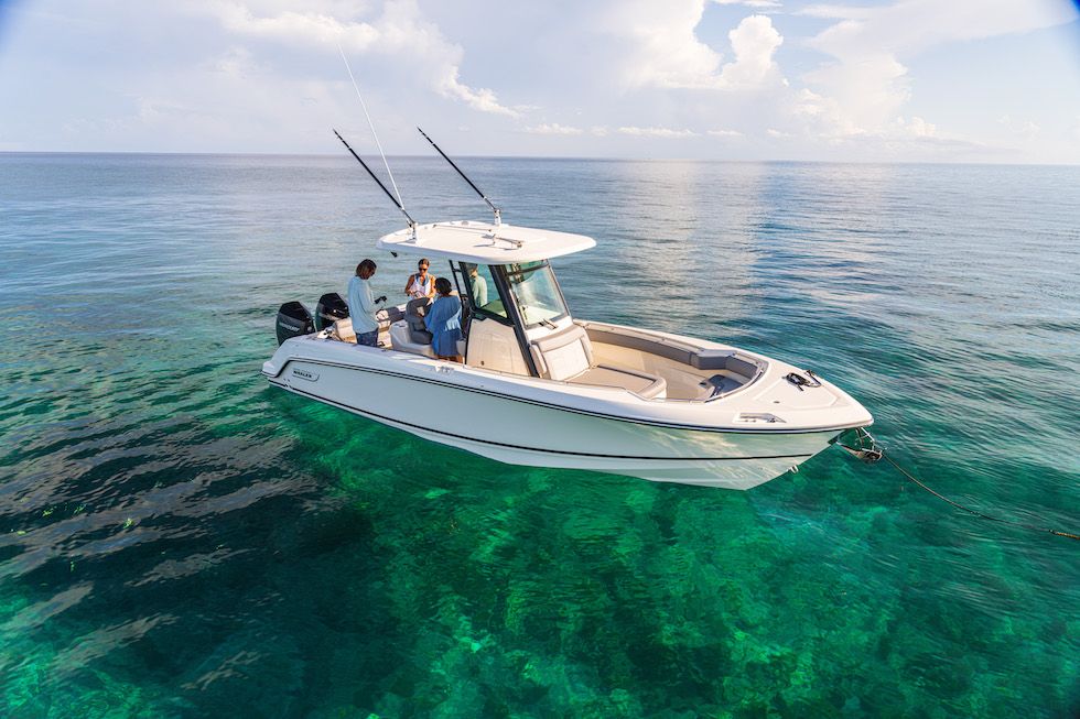 The deep vee deadrise ensures comfort and control in chop, while a thoughtfully integrated cuddy cabin adds sheltered flexibility without compromising the sporty profile.