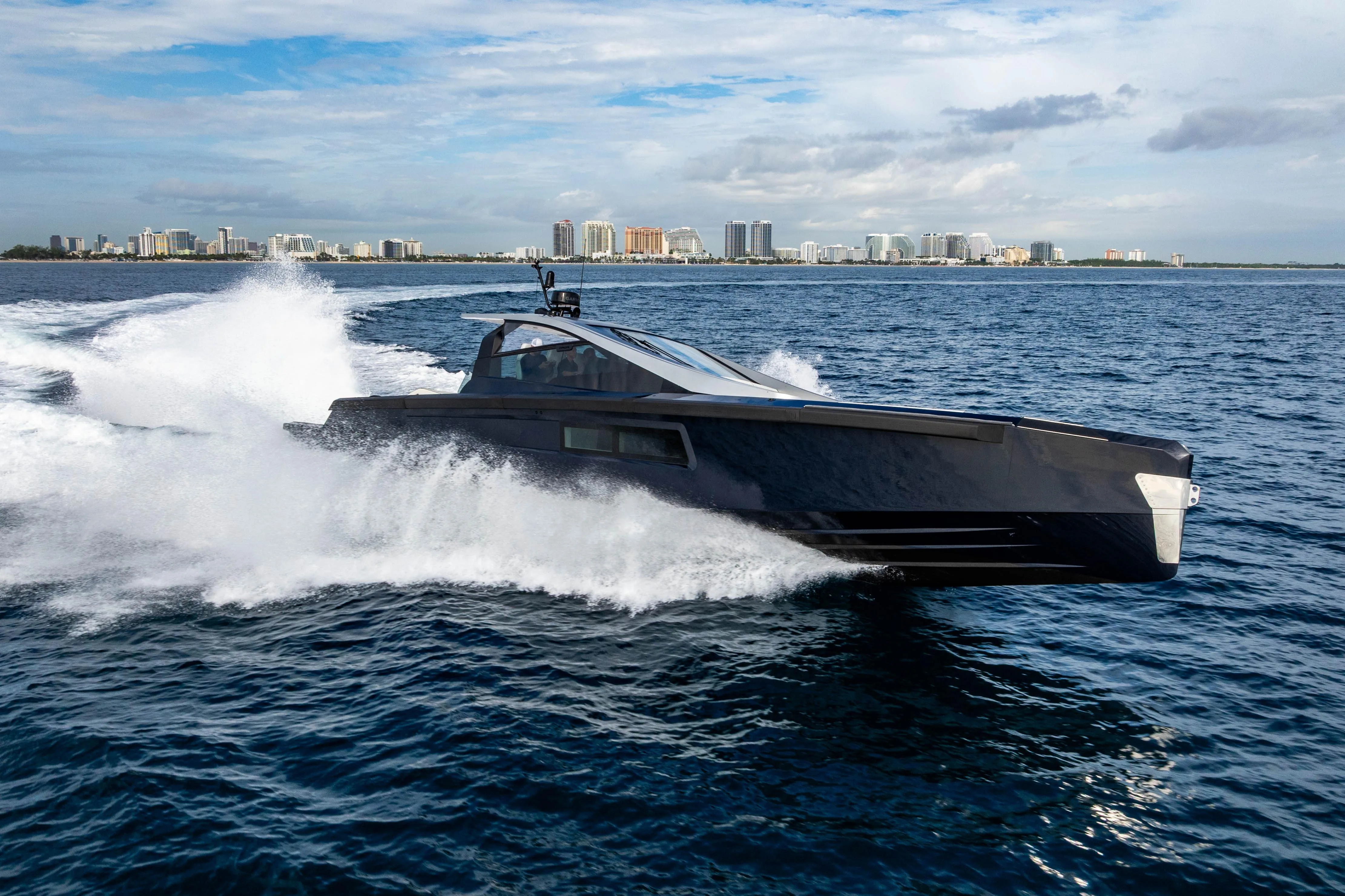 - Huge, state-of-the-art helm station accommodates three display screens.