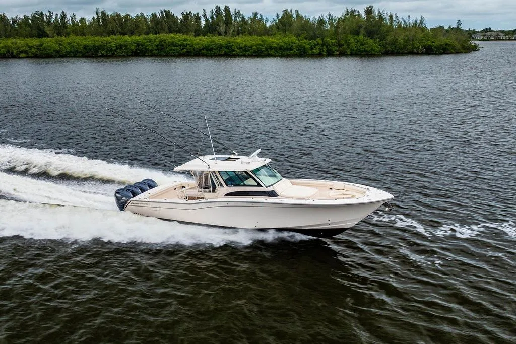 Let the adventures begin with the versatile 380 Realm. Combining incredible capability and performance with outstanding comfort, the 380 Realm is designed to make any on-water dream possible. Amenities for entertaining include a robust cockpit prep center; a massive, refrigerated under-seat cooler; a social open bow and more. The boat’s spacious center-console layout and brilliant new windshield design provide unobstructed views, while a large integrated hardtop provides tons of shade and protection from the elements — all the way to the horizon and beyond.