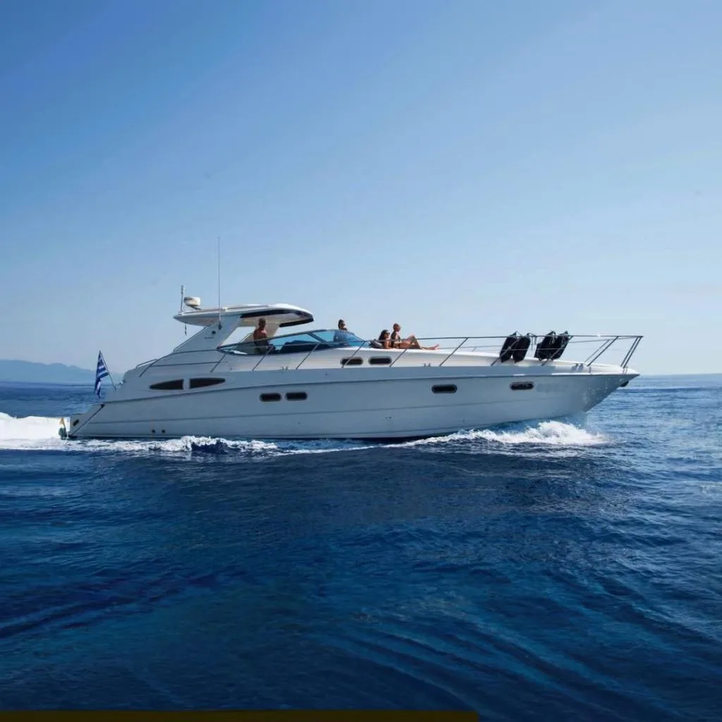 - Outdoor Spaces: Generous aft cockpit for alfresco dining, a forward lounge area for sunset cocktails, and a teak-accented flybridge.