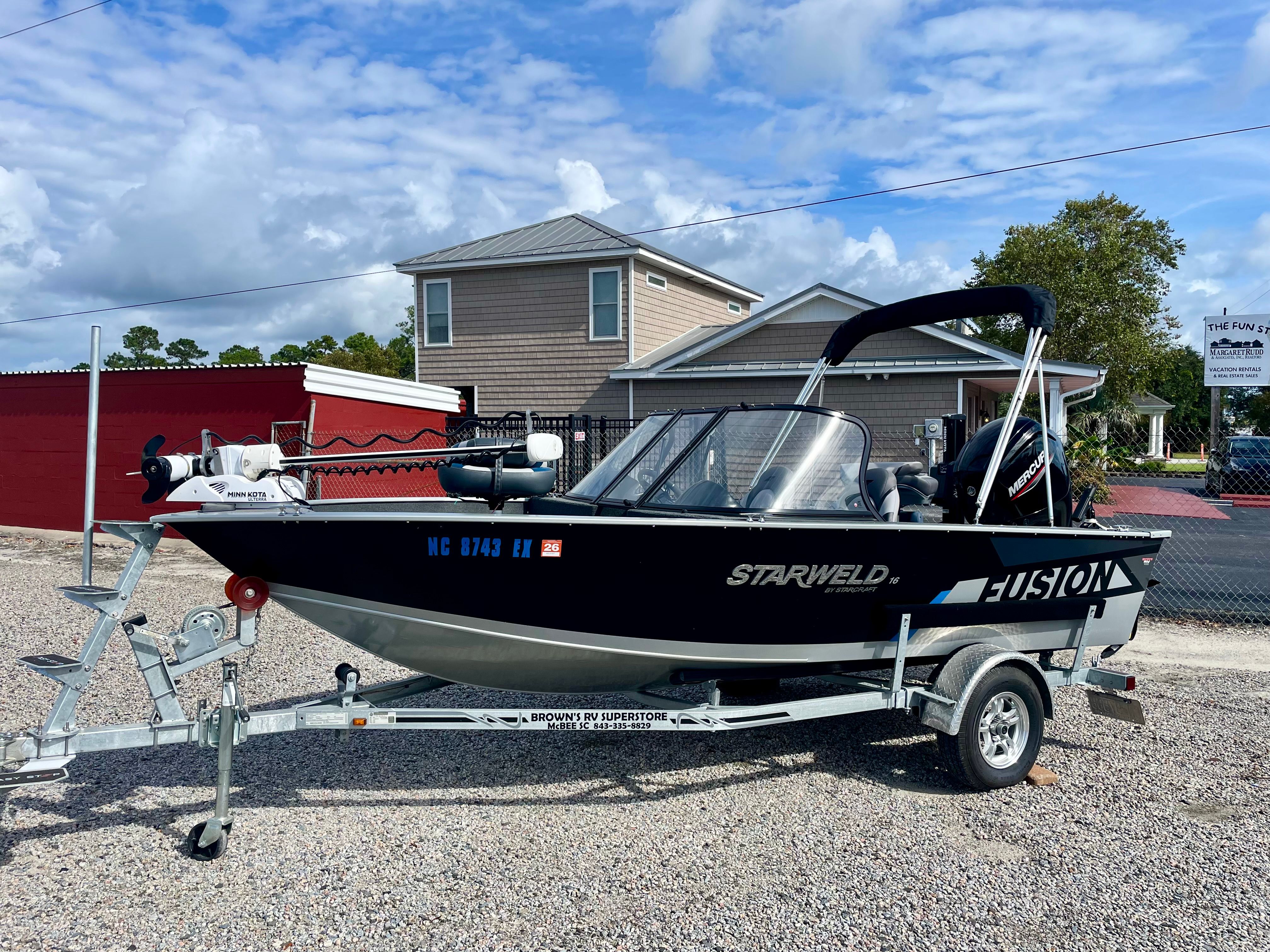 -Canvas top with LED spreader lights, rod holders, and electronics box