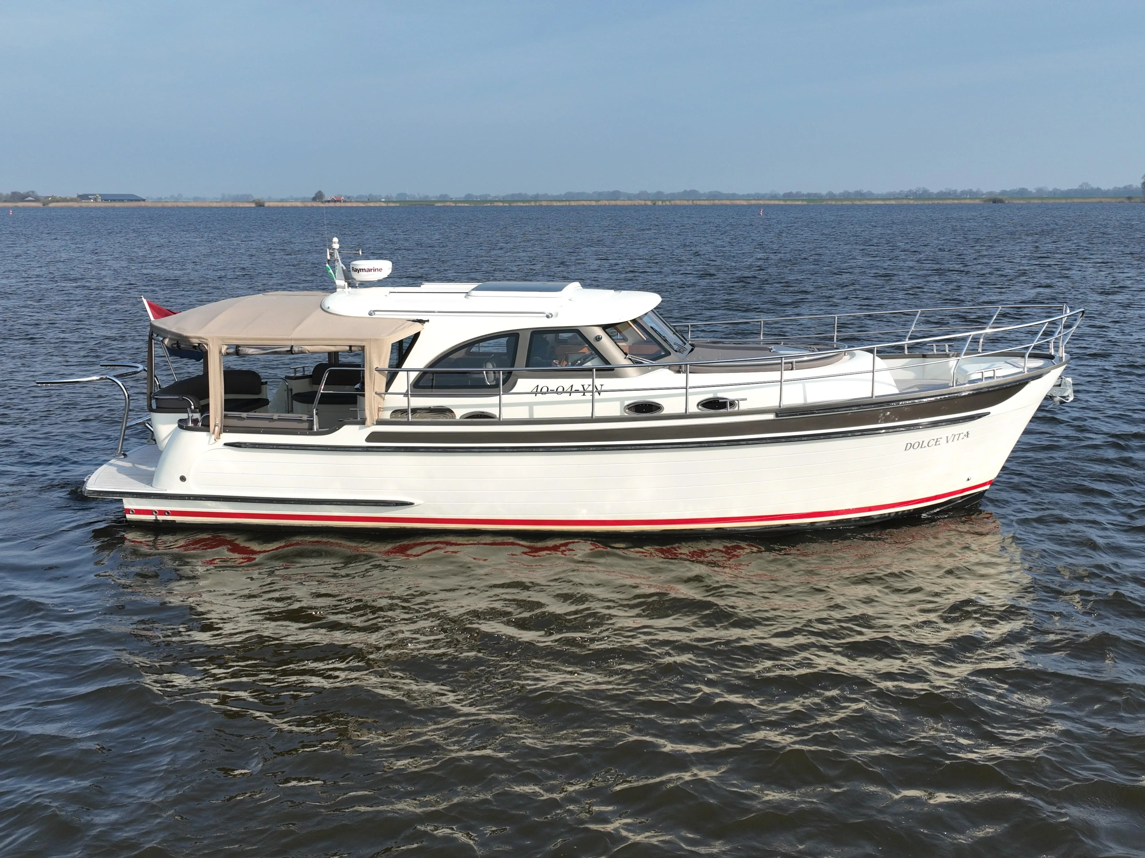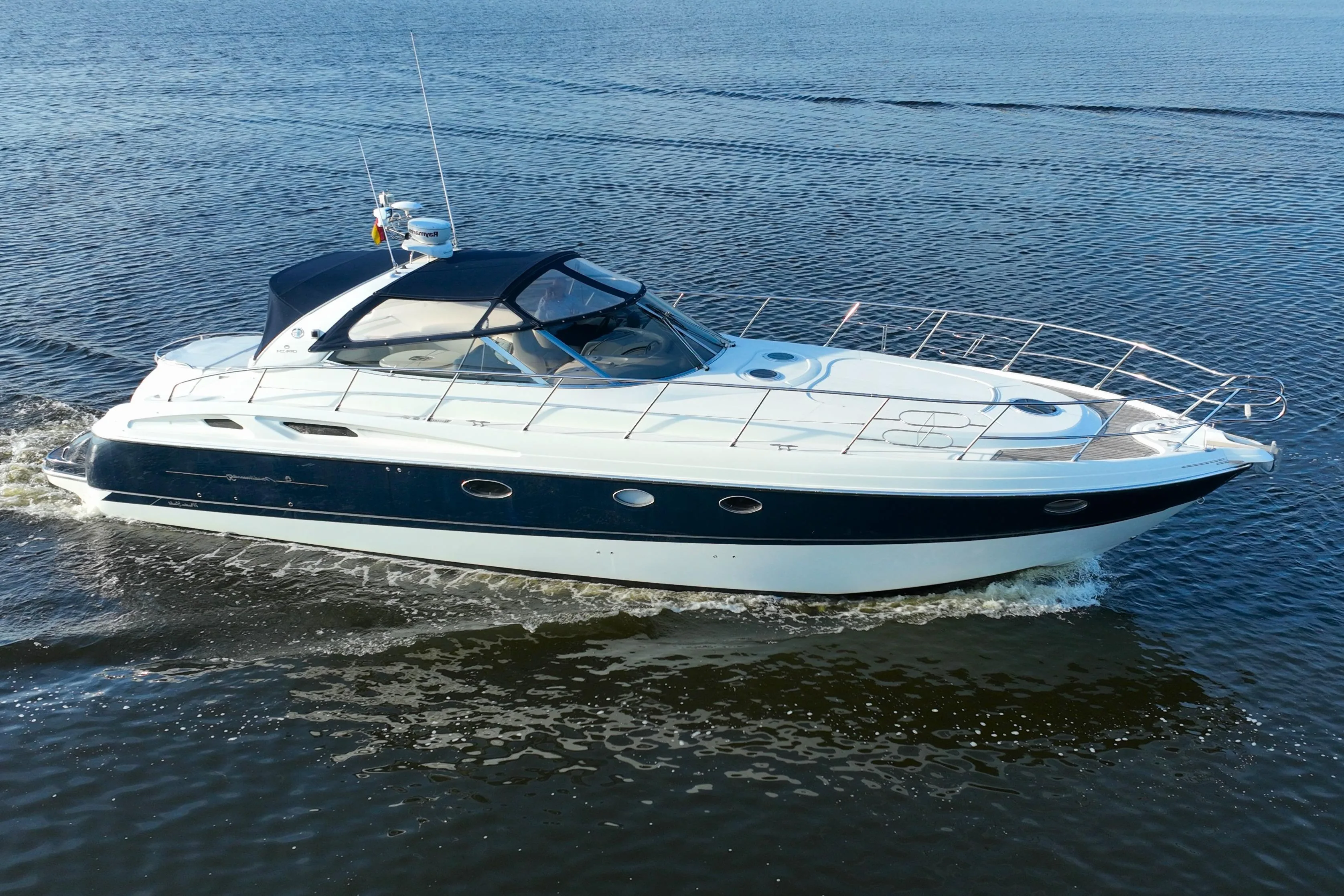 This Axopar XC Cross Cabin is a versatile and sturdy yacht. Thanks to its V-Stepped hull in combination with Joystick Piloting, it performs well on larger waters with a higher top speed and is very easy to manoeuvre. It also features a double cabin and a wet cell. The yacht is beautifully styled with the Brabus Line Trim Package and gives a luxurious and beautifully finished impression. This Axopar is powered by two 300 hp Mercury Verado engines. It is easy to move around thanks to the gangways and the two side doors in the wheelhouse that can be opened. There are two spacious sunbeds located in front of and behind the wheelhouse. The wheelhouse is equipped with windows all around, providing an optimal 360-degree field of vision. The wheelhouse also features a cosy dinette with a refrigerator under the captain's/co-pilot's seat. This yacht is a sporty all-rounder and comes with, among other things: LED lighting all around, Webasto electric sunroof, enlarged storage space in the forward cabin, sunbed on the foredeck with storage space, Webasto heating, window covers, Dometic refrigerator, searchlight with remote control, outdoor shower with hot water, underwater lighting, water ski bracket, Audio system with 5 speakers inside and 4 speakers outside, toilet room with shower and covers for outside cushions. For questions and/or to make an appointment, you are welcome at Elburg Yachting 7 days a week.