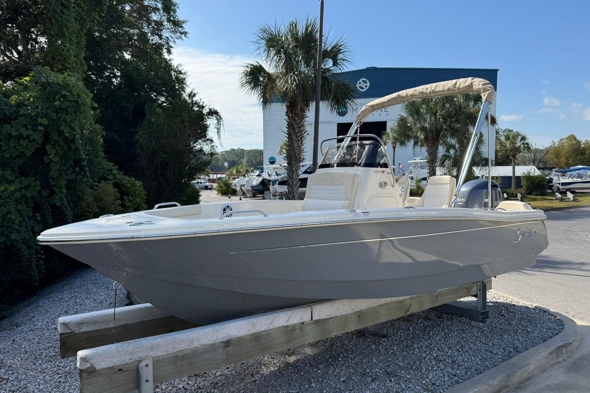 - Custom fiberglass leaning post with backrest, rigging tray, tackle storage, sink, glove boxes, removeable cooler, cup holders and rod holders