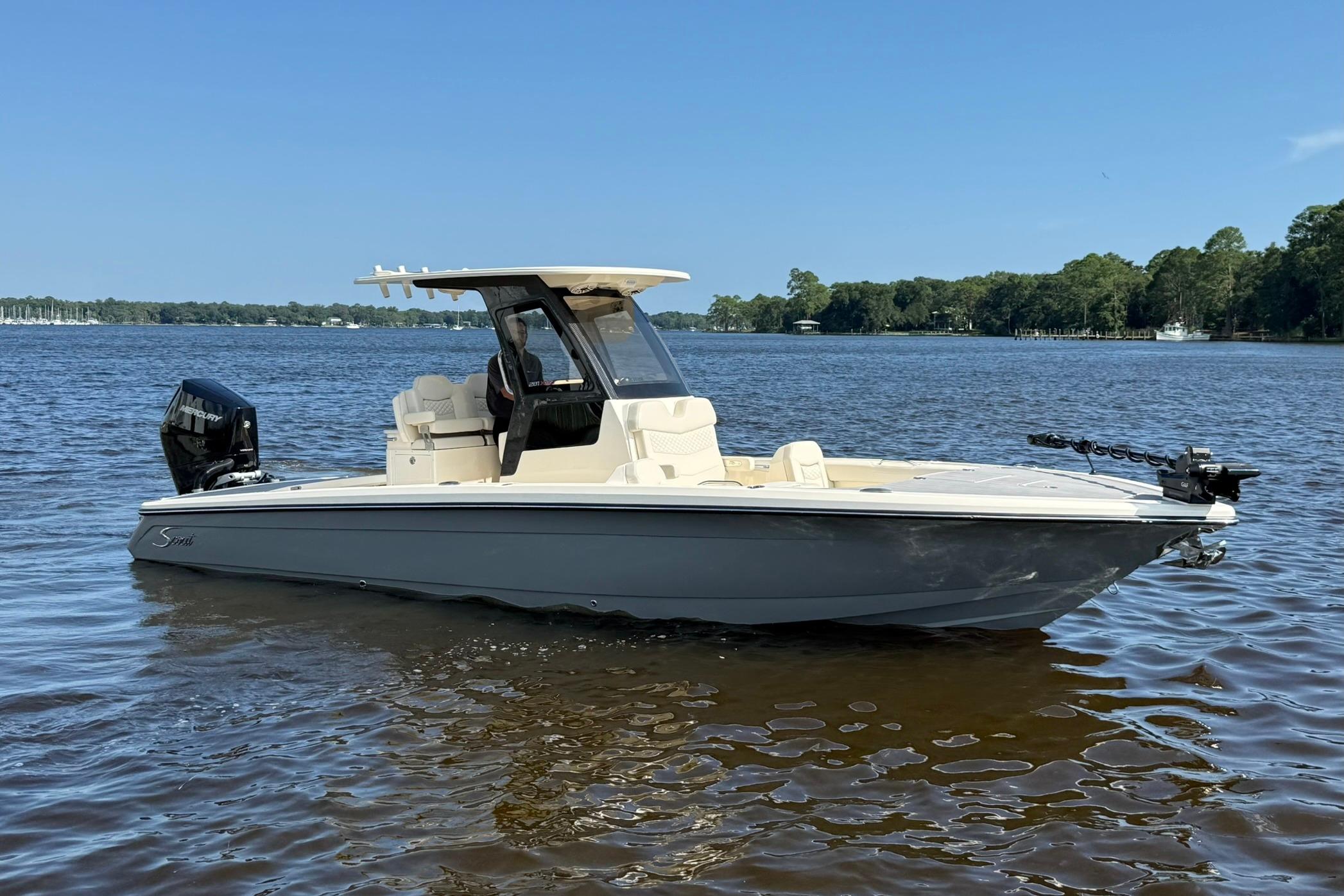 The 2022 Crevalle 26 HBW is the ultimate do‑it‑all hybrid bay boat, built to transition seamlessly between shallow inshore waters and open‑water adventures. Powered by a Suzuki 300 with digital throttle and electronic steering, it delivers smooth, responsive control and efficient performance. This model is fully loaded with premium upgrades, including twin 10" Simrad multifunction displays, a Minn Kota trolling motor for precise maneuvering, Syonics night vision for enhanced low‑light awareness, and an 8' Power-Pole for quick, reliable anchoring in the shallows.