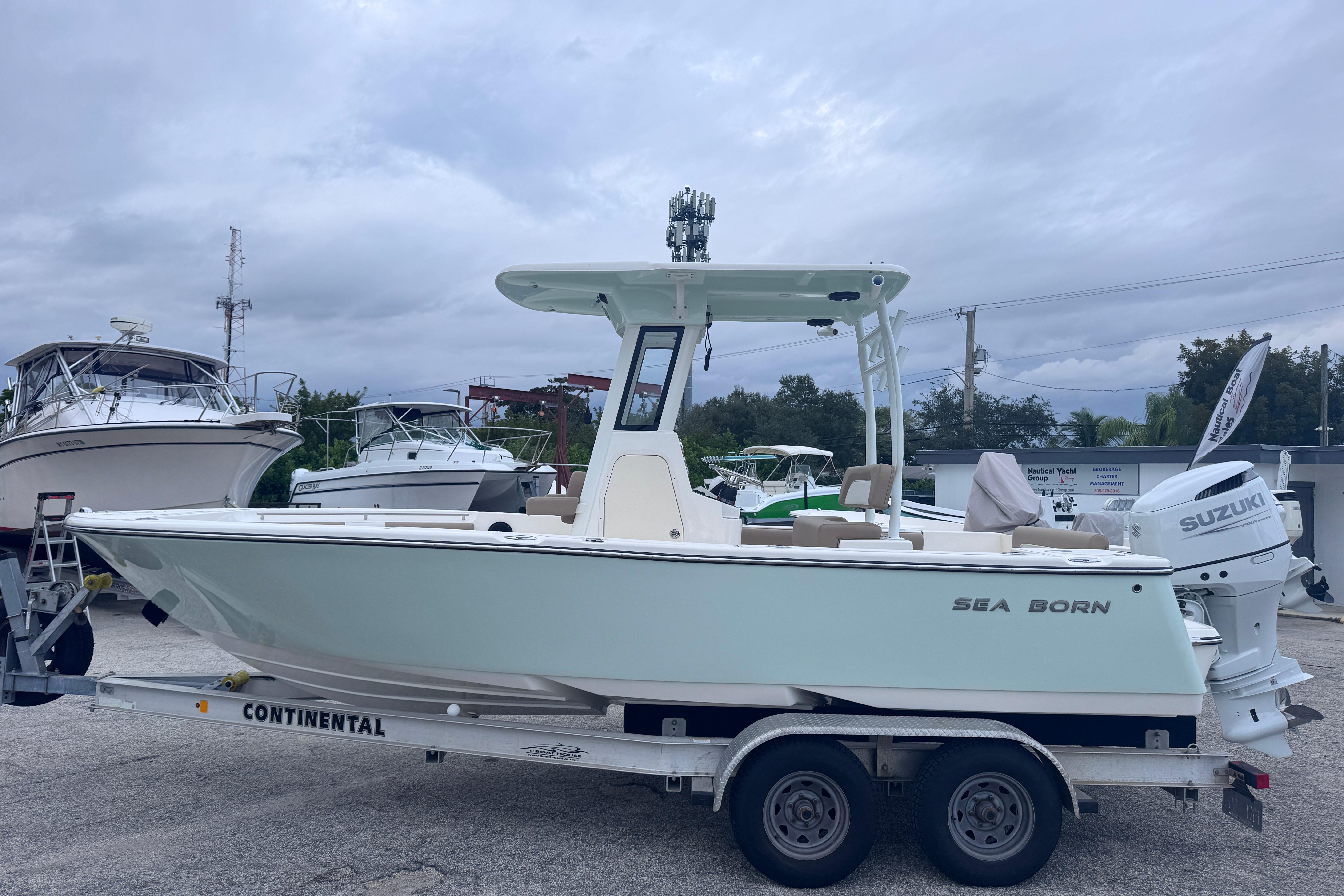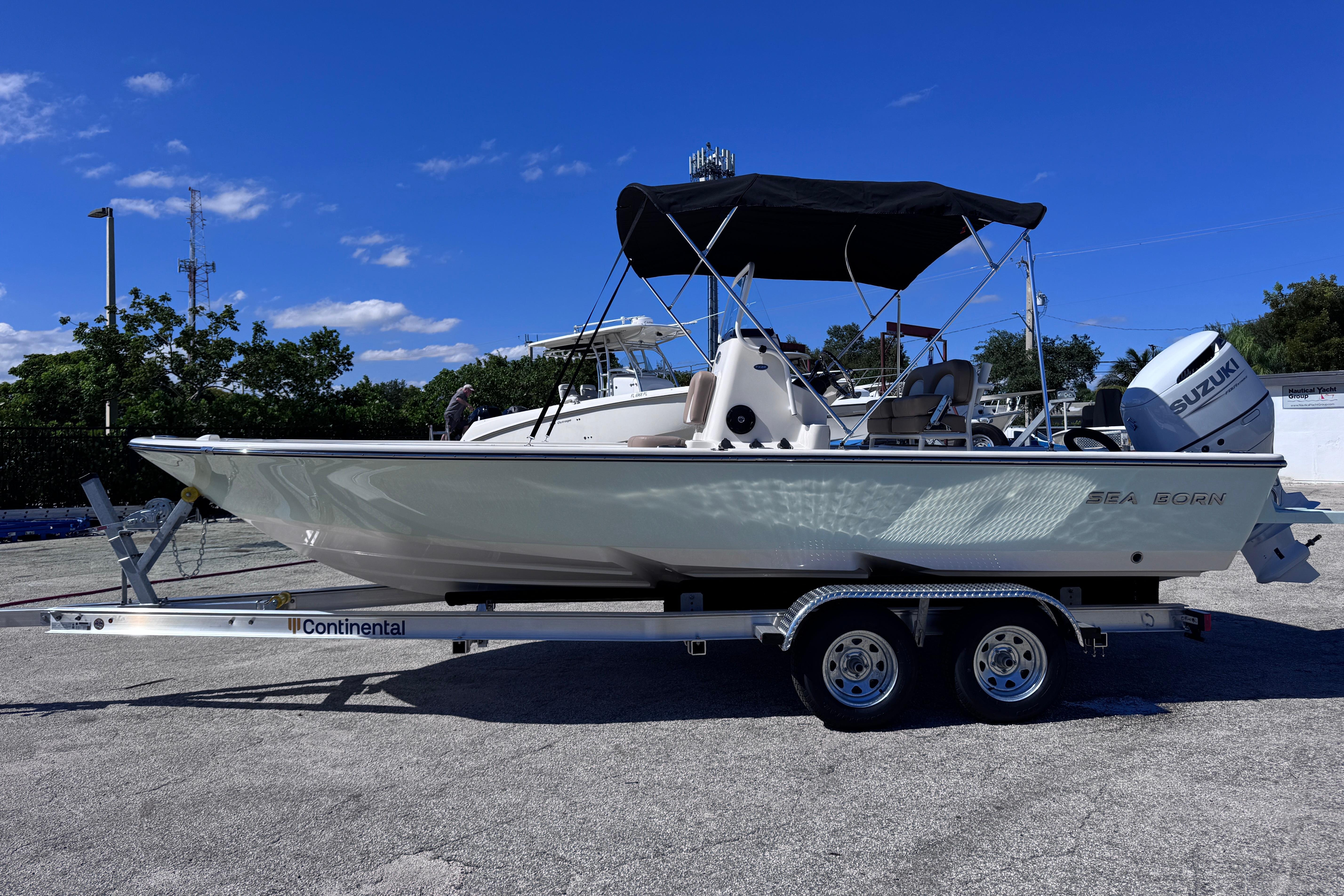 F1 Hard Top: White Gelcoat - Molded E-Box -2 Spreader Lights, LED, Fore & Aft - 4 Rod Tubes Simrad GO9 XSE GPS / Depth Sounder with SS60 Transducer Simrad RS20 DSC VHF Radio & Antenna with SS Ratchet Mount Fusion RA70 Bluetooth Stereo w/ 4 Fusion Speakers Dual Bank Battery Charger Tilt-out Tackle Unit in Console Deluxe Leaning Post w/ Backrest & Storage Deluxe Dash w/ SS Push Button Switches Console Footrest w/ Storage Cockpit Bolsters 3in Bow Cushions Bow Backrest Cushions Forward Facing Backrest Head Compartment w/ Porta Potty Aft Bench Seat w/ 3 Individually Folding Seat Backs