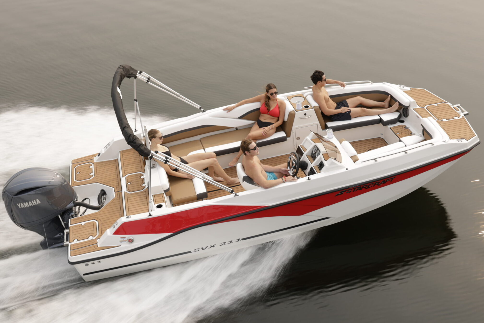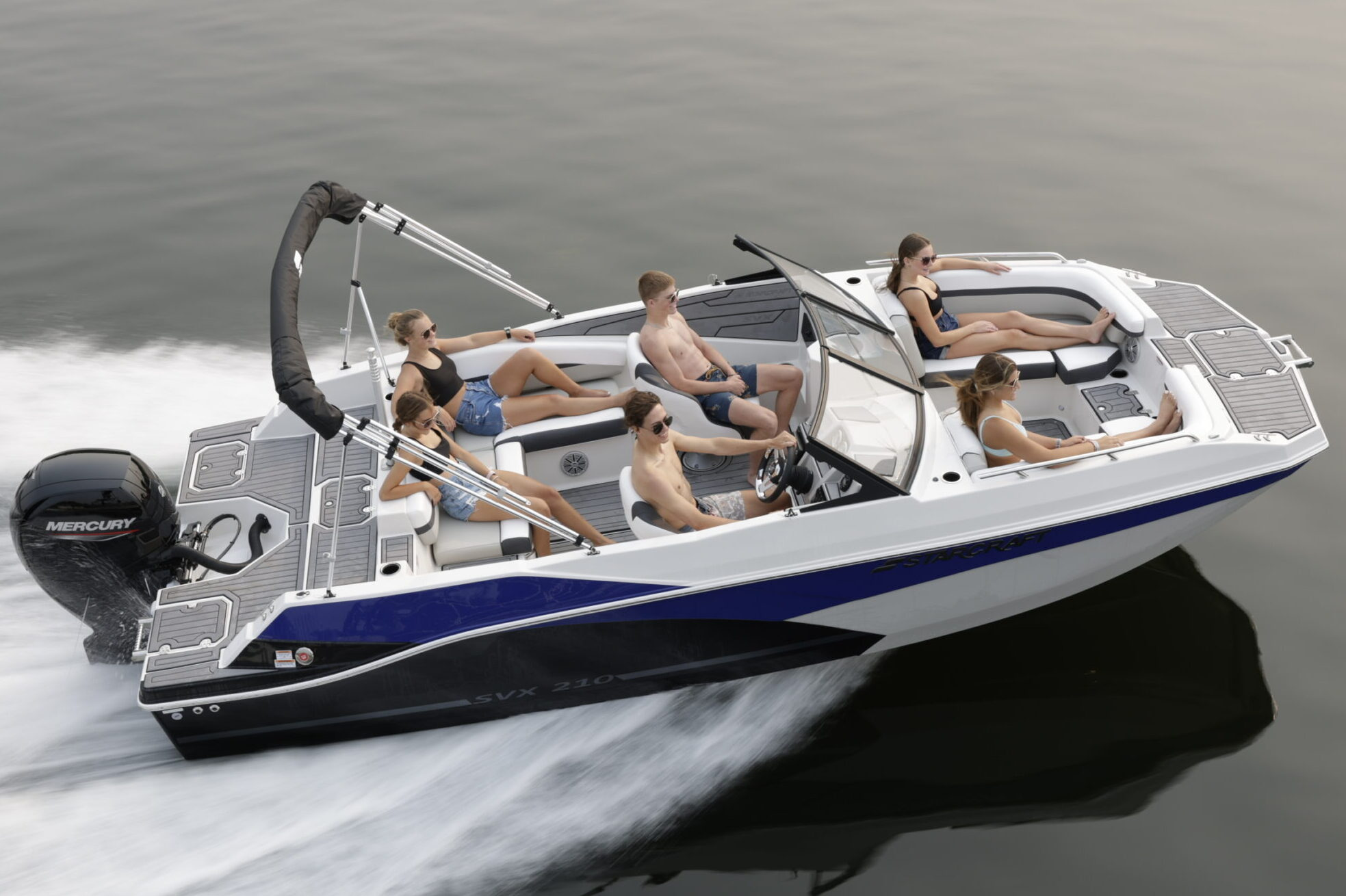 The all new SVX series proves that fun on the water doesn’t have to come with a big price tag. SVX comes loaded with value, including features like a four-speaker stereo, a Bimini top for sun protection and EVA soft touch traction mat flooring in the bow and stern –all standard.