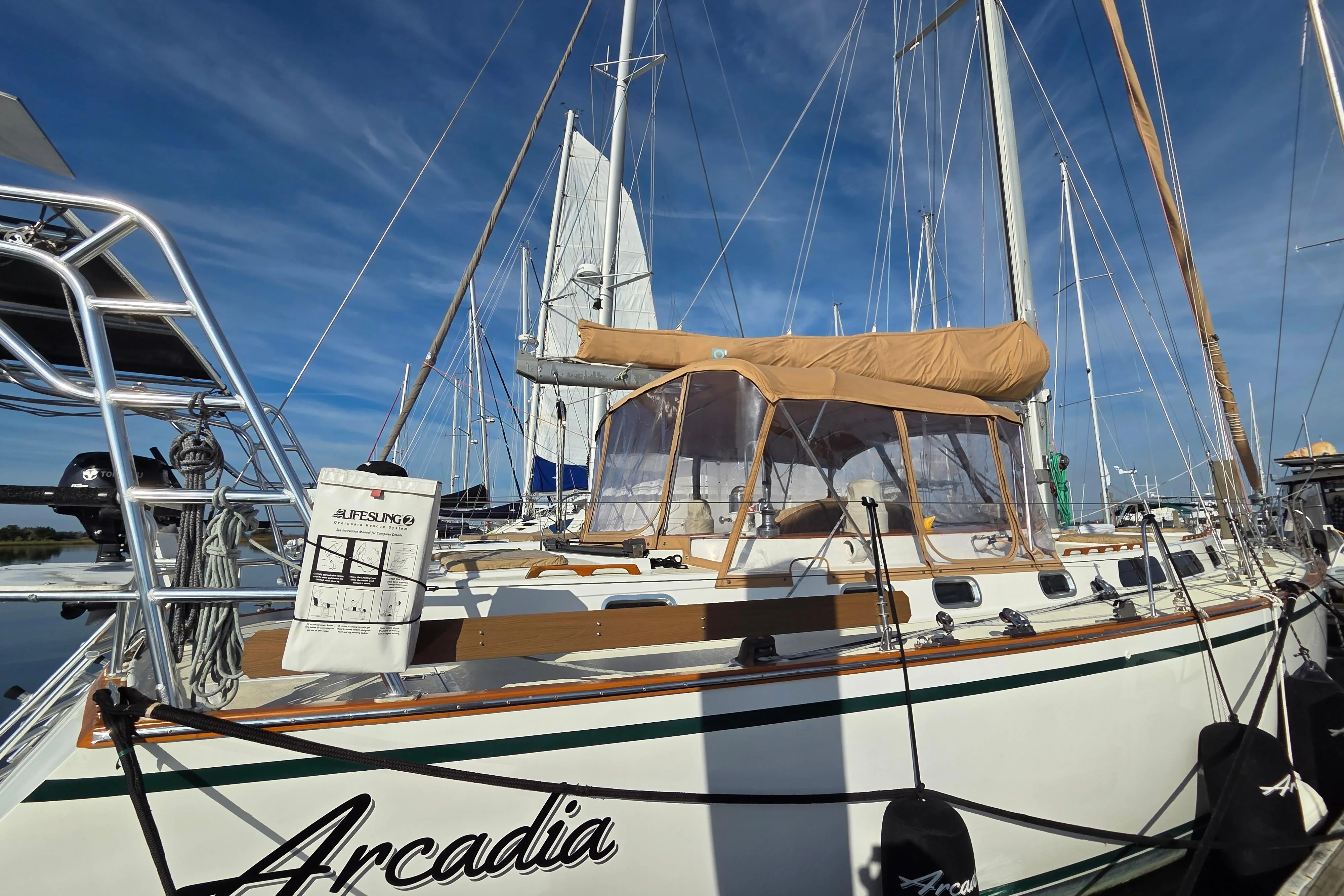 Head Compartment: A fully enclosed head with a freshwater sink provides convenience and privacy, perfect for extended outings.