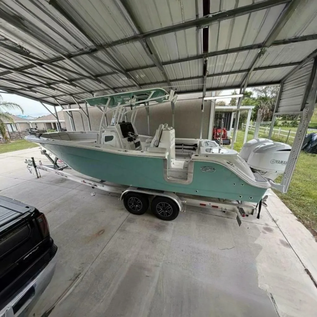 The Tidewater 256 Adventure built for serious offshore fishing and family outings alike. Powered by twin Yamaha 150 HP engines, this 25-foot center console is known for its smooth ride, spacious layout, and impressive performance. With ample seating, advanced electronics, and fishing amenities, the 256 CC is as versatile as it is powerful, making it a fantastic choice for anglers and leisure seekers alike.