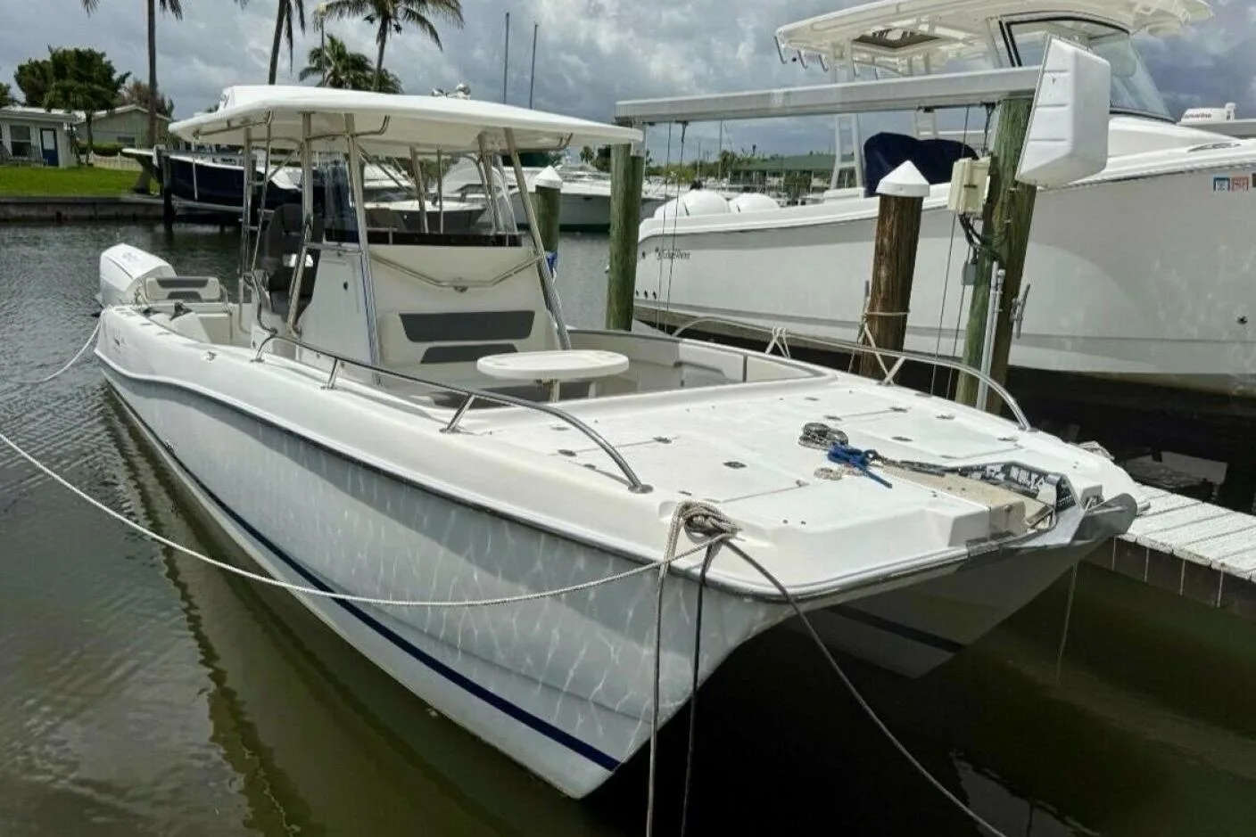 Twin Yamaha Outboards: Twin Yamaha outboards provide reliable power and fuel efficiency, delivering a smooth, fast ride with the confidence to tackle offshore waters.