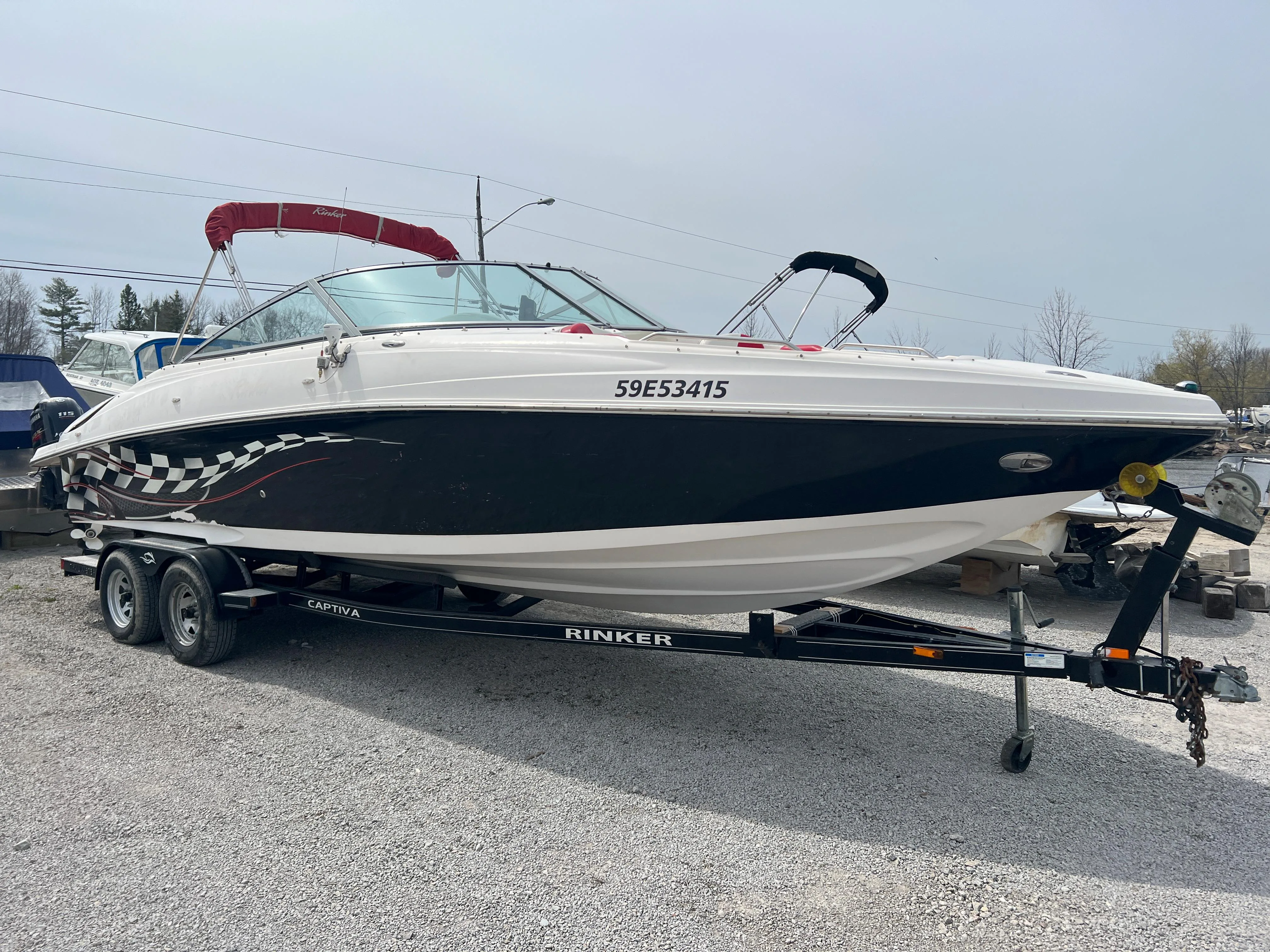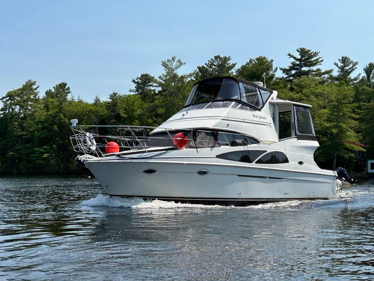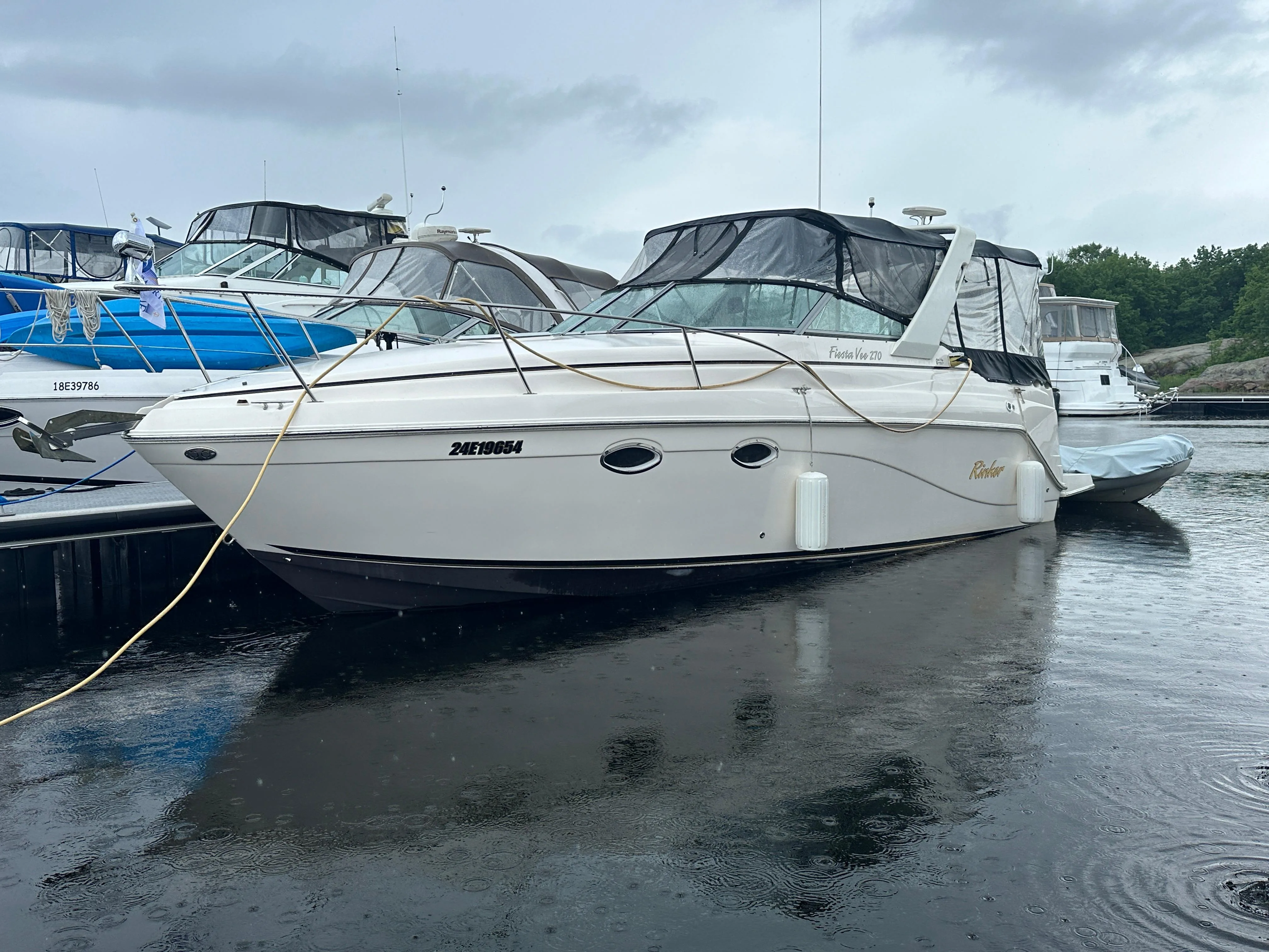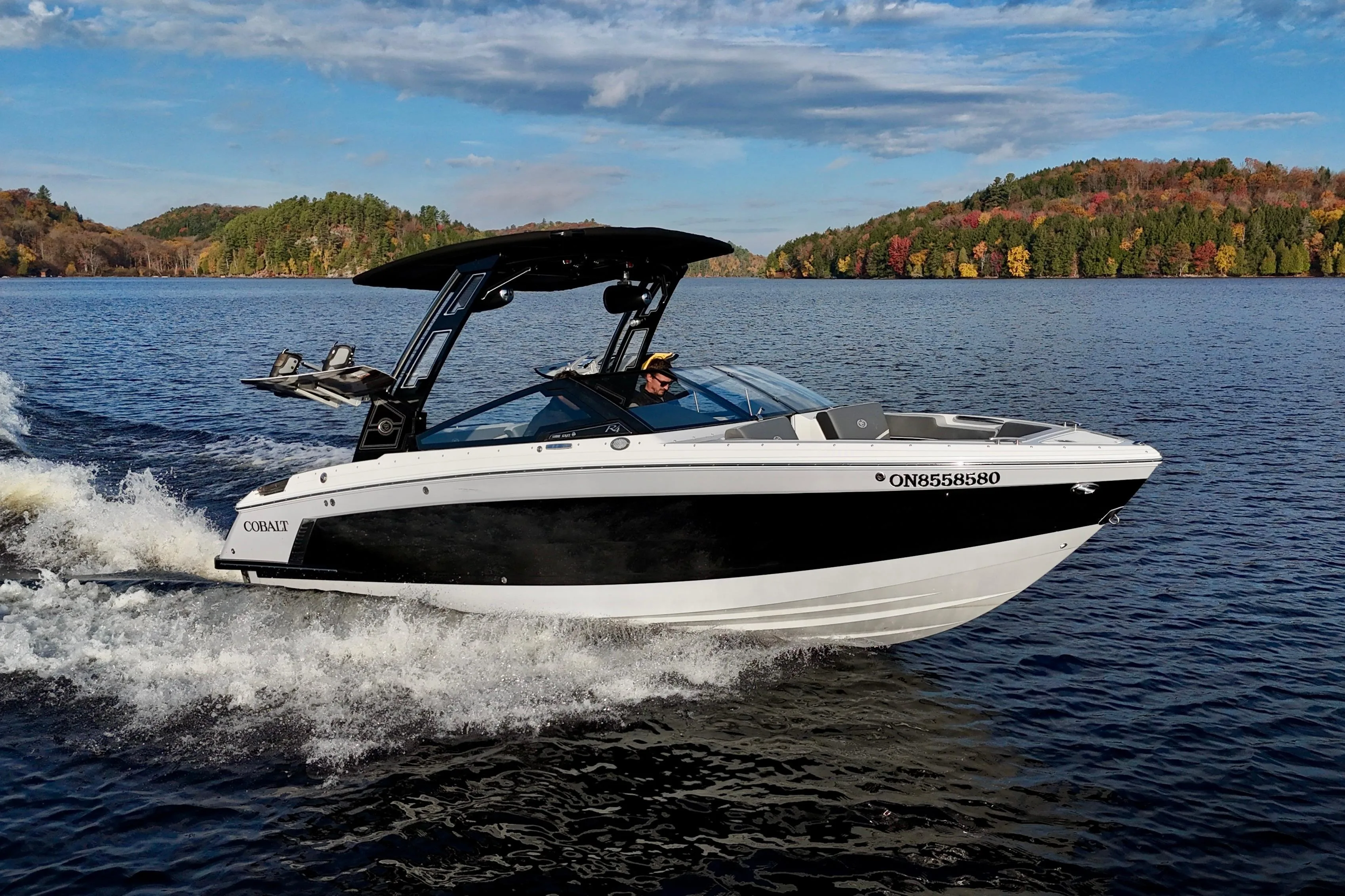 - Nested wind-break door in full windshield provides protection as well as easy bow access.