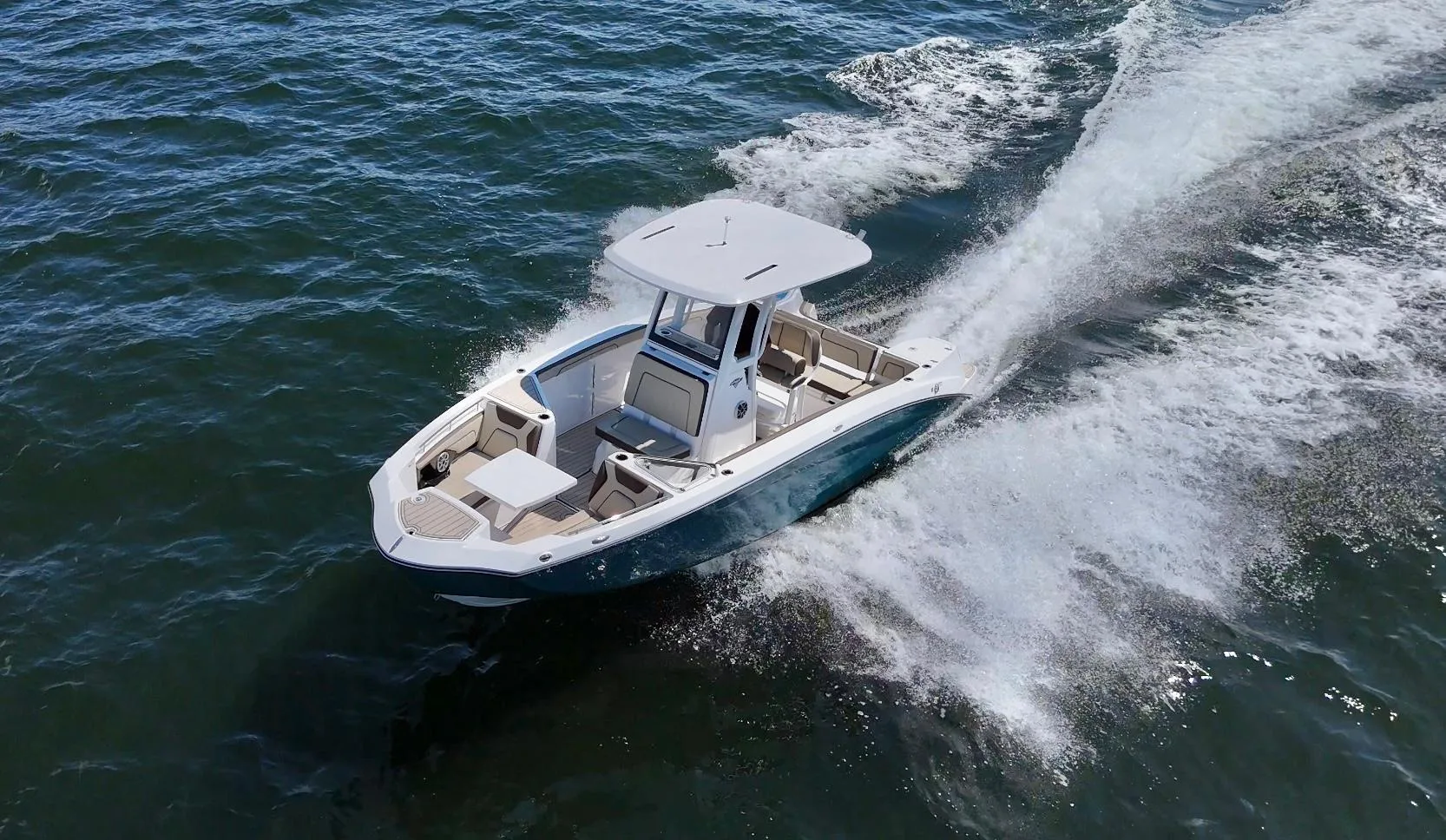 At nearly 40 feet, the 380 Realm express cabin cruiser is a sleek and powerful offshore boat that synthesizes sumptuous comfort amenities, advanced power and performance, and a peerless fishing experience. The commanding center console layout provides seamless Simrad® integration with all navigation and power functions, and the customizable aft deck is ideal for angling or entertaining. Below deck, you’ll find a stunningly appointed cabin with refined and relaxing features that make short or long stays on the water transformative. Explore the many benefits of this 38-ft. express cruiser boat today, and finally make your grandest boating dreams real.